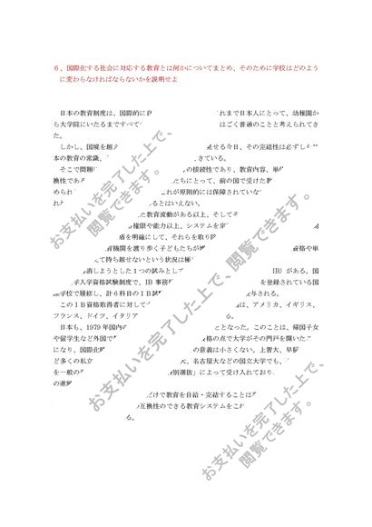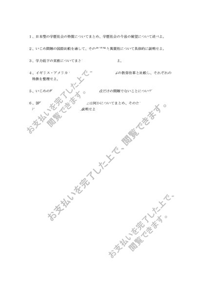 S0106 教育社会学 科目最終試験 参考答案6題セット