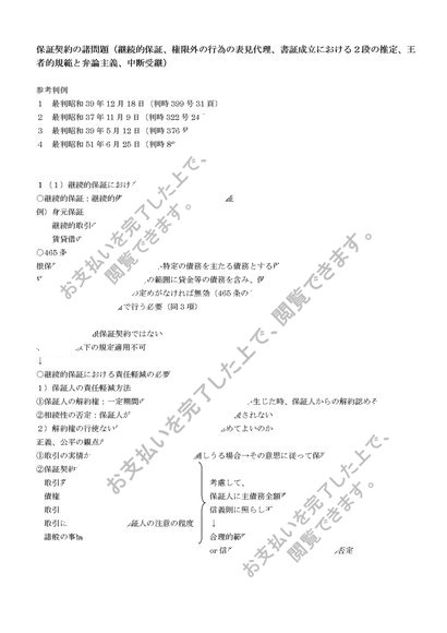 保証契約の諸問題(継続的保証、権限外の行為の表見代理、書証成立における2段の推定、王者的規範と弁論主義、中断受継)