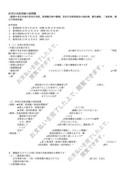 詐害行為取消権の諸問題(債務の本旨弁済の詐害行為性、取消権行使の範囲、詐害行為取消訴訟の訴訟物、被告適格、二重起訴、独立当事者参加)
