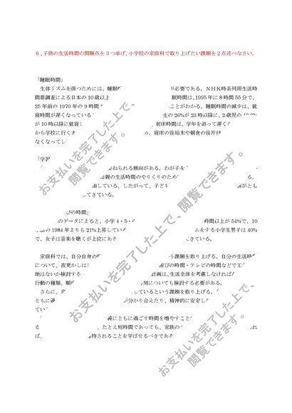 S0615 家庭科概論 科目最終試験 参考答案6題セット