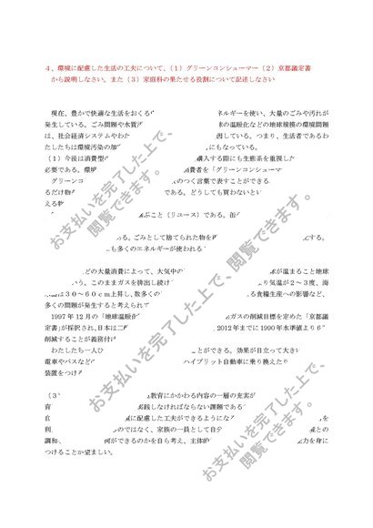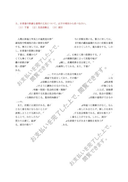 S0615 家庭科概論 科目最終試験 参考答案6題セット