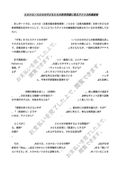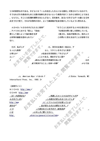 ADHD/ADDの子どもたちの教育問題に見るアメリカ的価値観[早稲田大学・文学部・アメリカ文化の諸相・評価A]