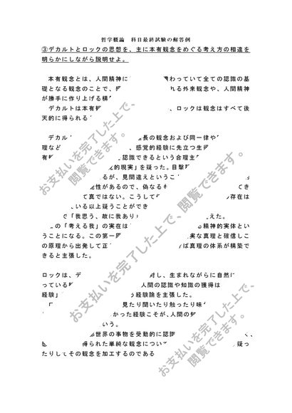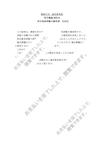 佛教大学通信教育部 哲学概論R0512 科目最終試験解答例①②③