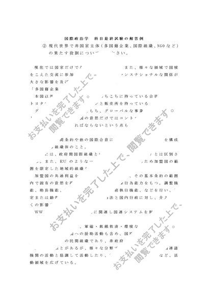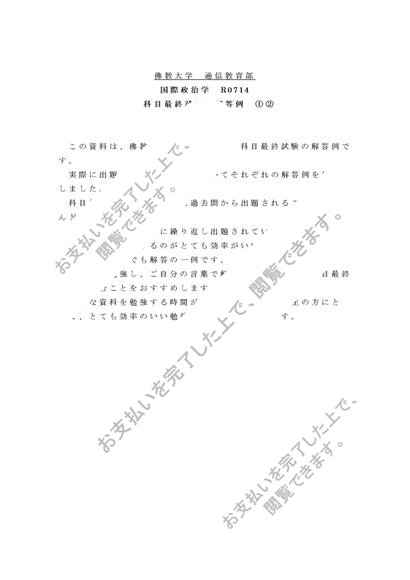 佛教大学通信教育部 国際政治学R0714 科目最終試験解答例①②