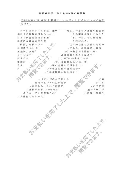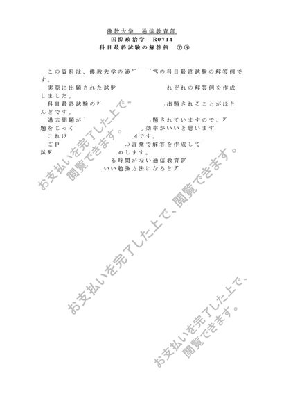 佛教大学通信教育部 国際政治学R0714 科目最終試験解答例⑦⑧