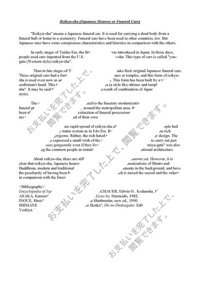 Reikyu-sha (Japanese Hearses or Funeral Cars)[東京学芸大学・教育学部・日本宗教学・評価A]