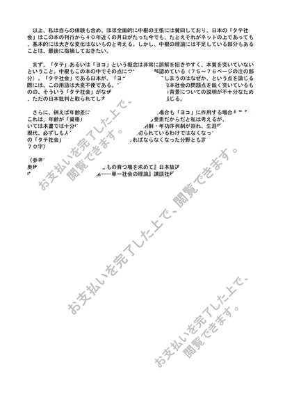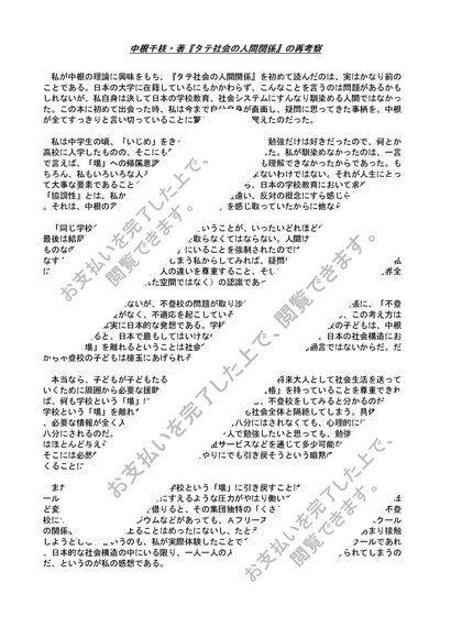 中根千枝・著『タテ社会の人間関係』の再考察[東京学芸大学・教育学部・日本社会学・評価A]