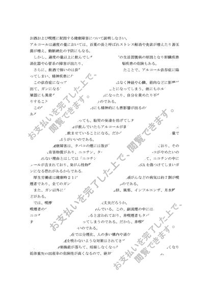 試験解答例 「お酒および喫煙に起因する健康障害について説明しなさい」と「筋肉収縮のメカニズムと優秀なスポーツ選手の筋線維」