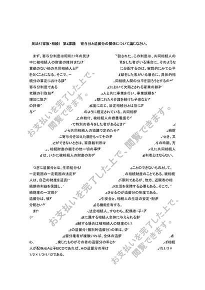 民法5第4課題 寄与分と遺留分の関係について論じなさい。 合格レポート