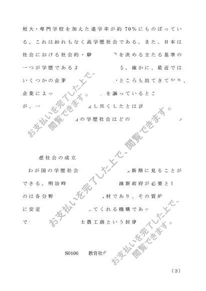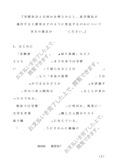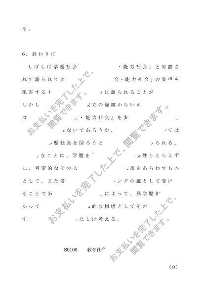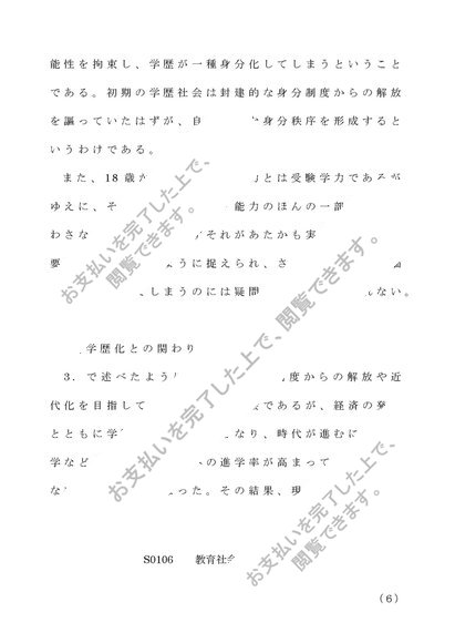 S0106 教育社会学 第1設題(A評価)