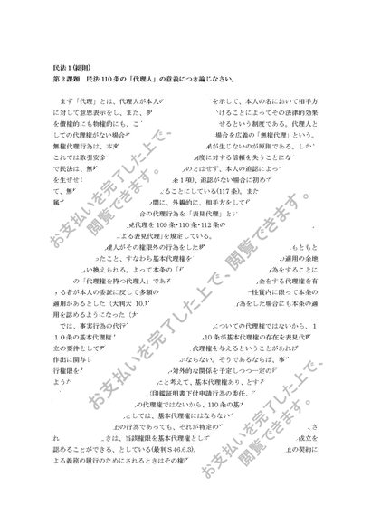 民法1 第2課題 民法110条の「代理人」の意義につき論じなさい。 合格レポート