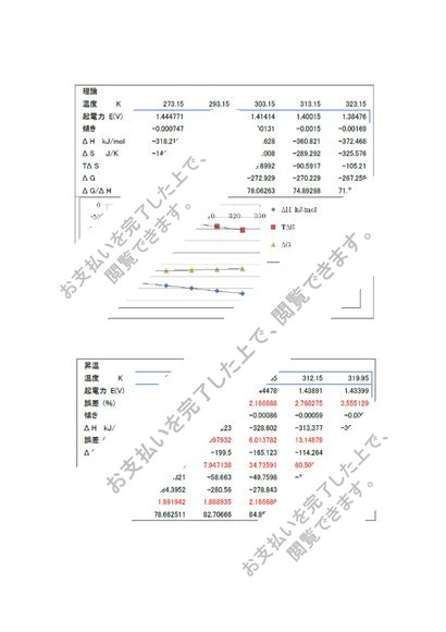 B-2(電池の温度変化から、この電池における可逆的反応の熱力学的諸数値を求める)