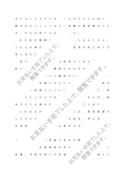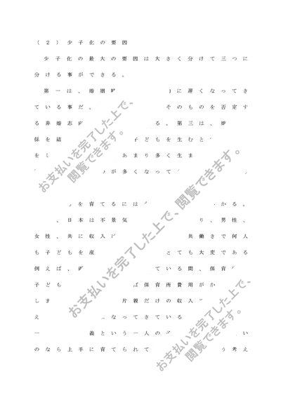 わが国の「少子化」の要因および児童に及ぼす影響について