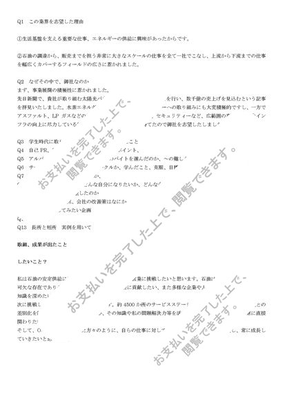 昭和シェル石油 ES 【通過・内定】 2012年 エントリーシート