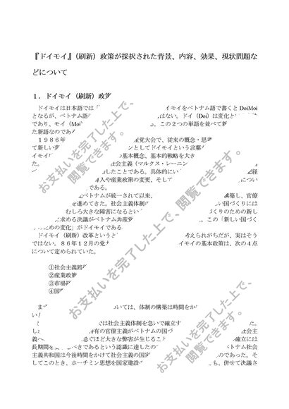 『ドイモイ』(刷新)政策が採択された背景、内容、効果、現状問題などについて