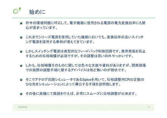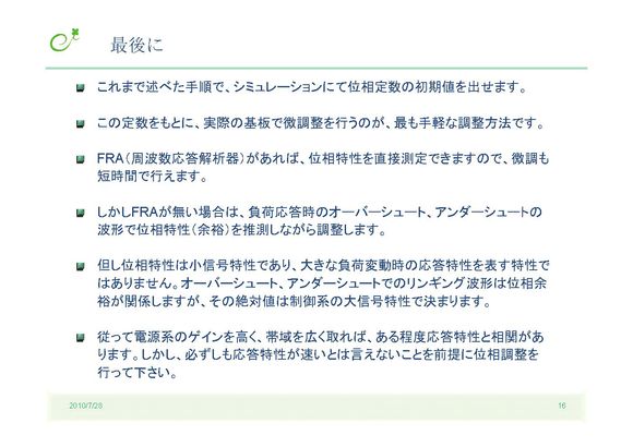 スイッチング電源の位相補償