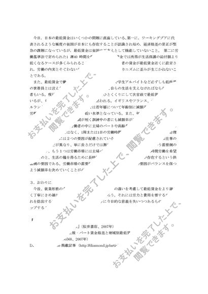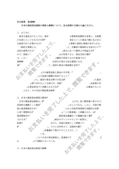 社会政策第2課題 日本の最低賃金制度の現状と課題について、社会政策の立場から論じなさい。合格レポート