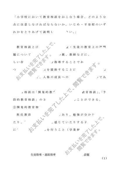 生徒指導・進路指導の研究(初等) 第1設題(A評価)