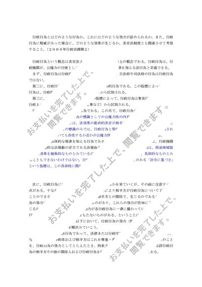 中央大学法学部通教 2008年 行政法 第2課題 清書