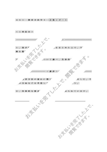 451教育方法学 word版合格レポート〈1単位目〉2010年度 明星大学