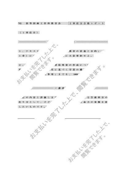752初等図画工作教育法(2単位分)お買い得 word版合格レポート 2010年度 明星大学