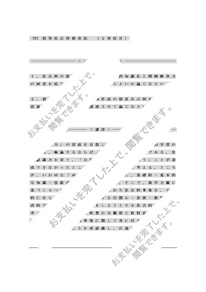757初等社会科教育法(2単位分)お買い得 word版合格レポート 2010年度 明星大学