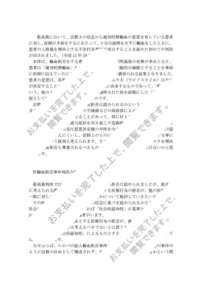インフォームドコンセントとエホバの証人輸血拒否事件の考察