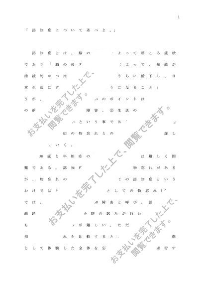医学概論 「認知症について述べよ。」 課題レポートA判定