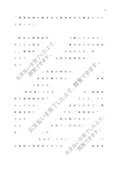 精神医学① 「精神医療の歴史及び精神医学の概念について述べよ。」 課題レポートA判定
