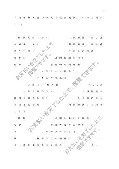 精神医学② 「精神療法及び環境・社会療法について述べよ。」 課題レポートA判定