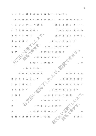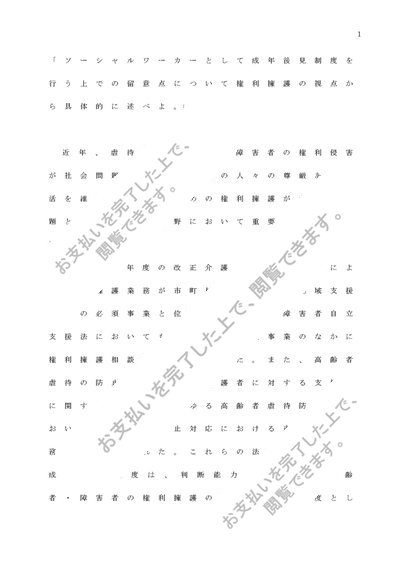 権利擁護と成年後見 「ソーシャルワーカーとして成年後見制度を行うでの留意点について権利擁護の視点から具体的に述べよ。」 課題レポートA判定