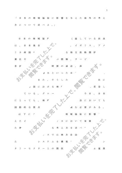 地域福祉論② 「日本の地域福祉に影響を与えた海外の考え方について述べよ。」 課題レポートA判定