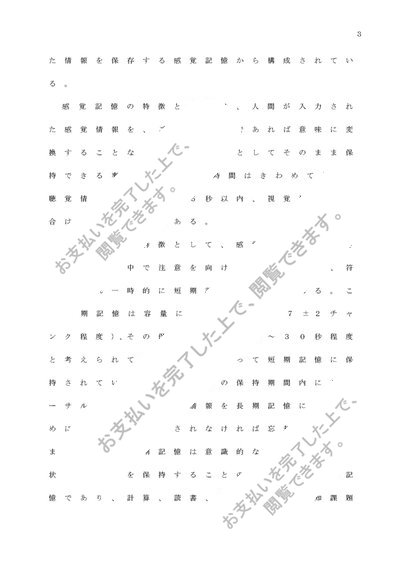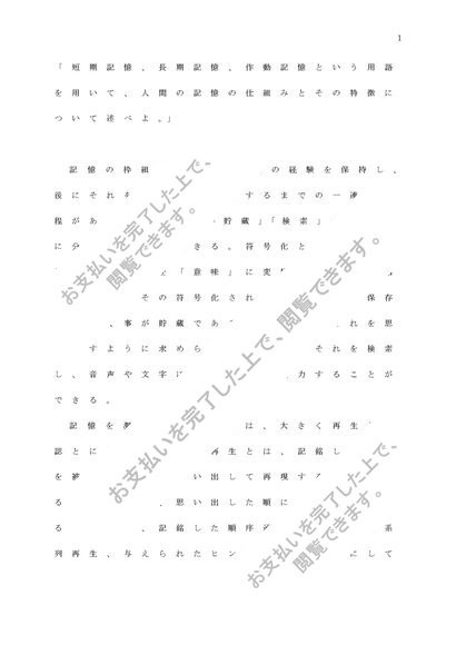 認知心理学 「短期記憶、長期記憶、作動記憶という用語を用いて、人間の記憶の仕組みとその特徴について述べよ。」 課題レポートA判定