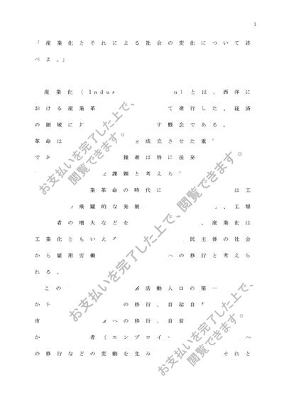 社会学概論 「産業化とそれによる社会の変化について述べよ。」 課題レポートA判定