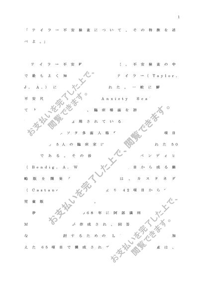 心理検査法① 「テイラー不安検査について、その特徴を述べよ。」 課題レポートA判定