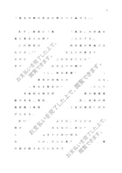 社会心理学② 「集合行動の社会心理につて論ぜよ。」 課題レポートA判定