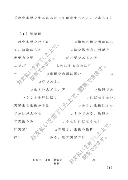 教育実習研究(小) スクーリング【レポート】 90点 佛大