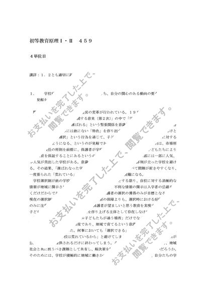 459 初等教育原理Ⅰ・Ⅱ 4単位目