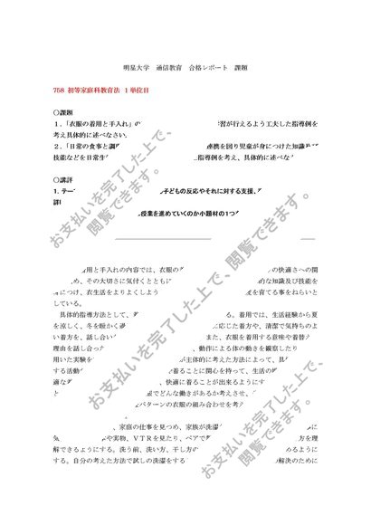 758 初等家庭科教育法 1単位目 合格レポート