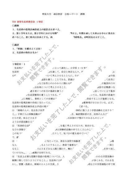 759 初等生活科教育法 1単位目 合格レポート
