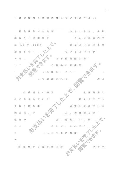 発達心理学② 「社会環境と発達病理について述べよ。」 課題レポートA判定
