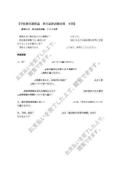 学校教育課程論 【テスト】 佛大科目最終試験 6問 90点