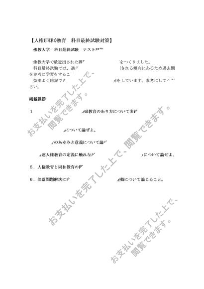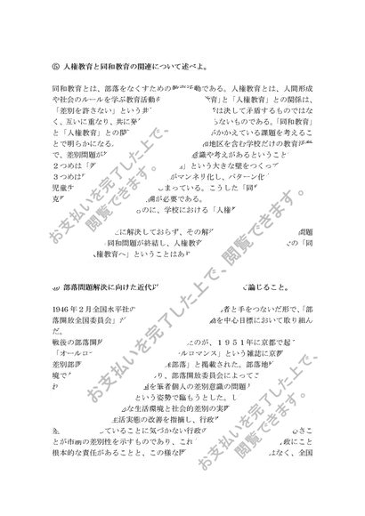 人権(同和)教育 【テスト】 佛大科目最終試験 6問 90点