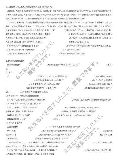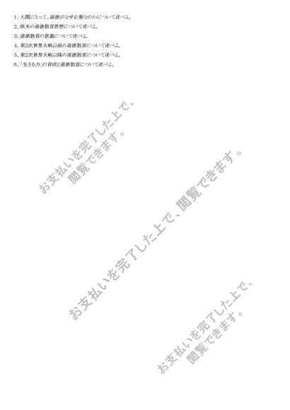 道徳教育の研究 科目最終試験 回答例6題セット