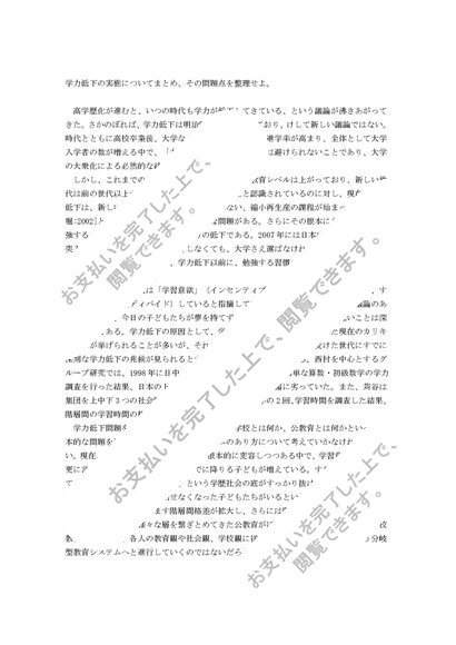 学力低下の実態についてまとめ、その問題点を整理せよ(科目試験用)