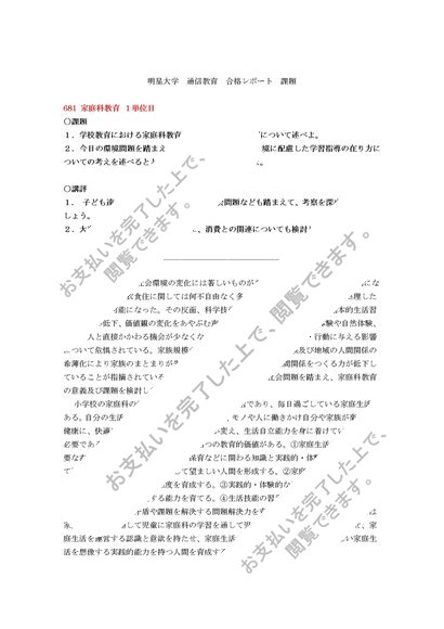 681 家庭科教育 1単位目 合格レポート