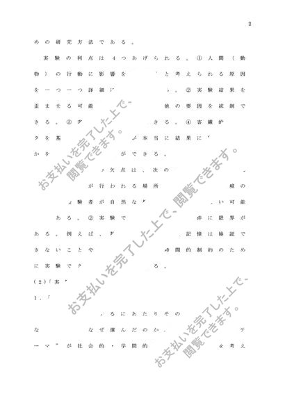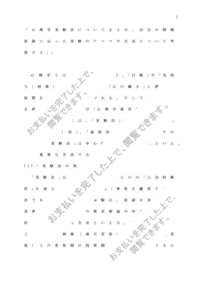心理学基礎実験① 「心理学実験法についてまとめ、自分の問題意識に沿った実験のテーマや方法について考察せよ。」 課題レポートA判定