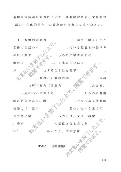 佛教大学小学校免許課程レポート 国語科概論 第1設題