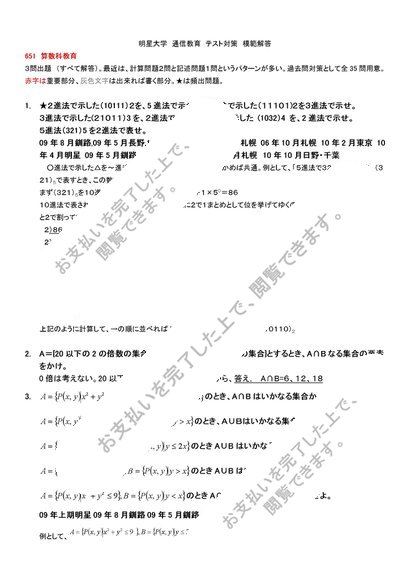 651 算数科教育 テスト対策 模範解答