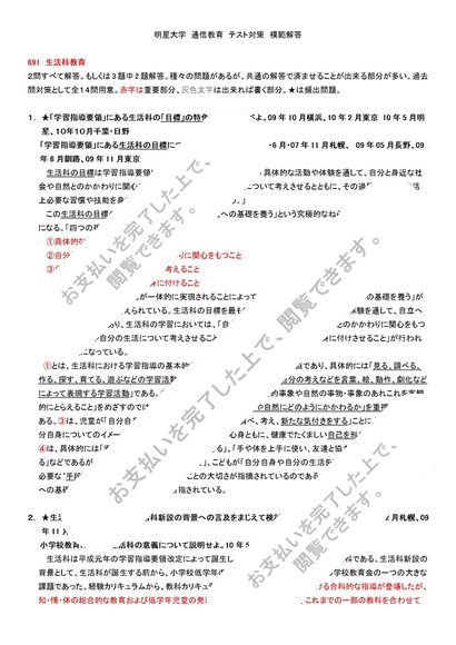 691 生活科教育 テスト対策 模範解答